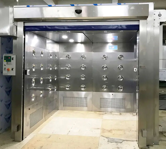 貨淋室是潔凈廠房和潔凈室的輔助設備,用于除去進入凈化廠房的物品表面附著的塵埃,同時貨淋室也起到氣閘的作用,防止未經(jīng)凈化的空氣進入潔凈區(qū)域,是進行物品凈化和防止外空氣污染潔凈區(qū)的有效設備。