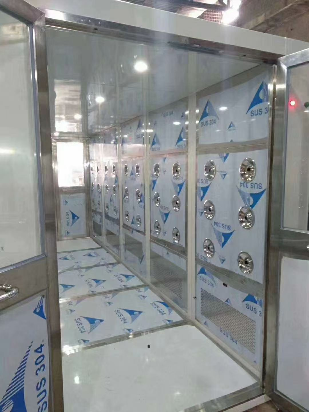 工作原理:經(jīng)高效過(guò)濾器過(guò)濾后的潔凈氣流由可旋轉(zhuǎn)噴嘴從各個(gè)方向噴射至貨物上,從而有效而迅速地清除塵埃粒子。清除后的塵埃粒子再經(jīng)由初、高效過(guò)濾器過(guò)濾后重新循環(huán)到風(fēng)淋區(qū)域內(nèi)。