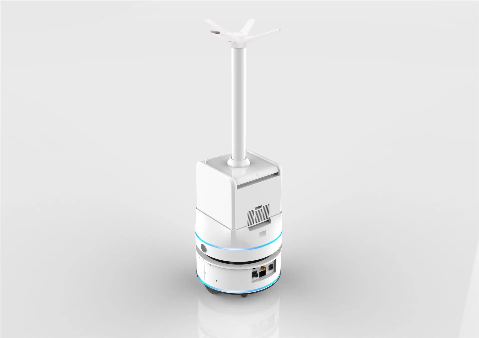 消毒防疫機器人簡稱消毒機器人,機器人為載體,在機器人內(nèi)部裝置消毒系統(tǒng),有霧化消毒機器人、紫外線消毒機器人、等離子消毒機器人、強光脈沖消毒機器人等。其中霧化消毒機器人應(yīng)用最為普遍,霧化消毒機器人是將消毒霧化,產(chǎn)生消毒氣體,利用機器人的氣動系統(tǒng)將消毒氣體快速的在室內(nèi)空間擴散,增加消毒的覆蓋面和均勻性,能有效、無死角地殺滅空氣中的致病微生物,消毒機器人能夠根據(jù)設(shè)定的路線自動、高效、精準(zhǔn)的對室內(nèi)進行消毒防疫。